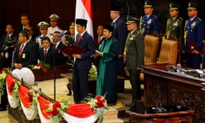 “This is the time for us to unite our hearts and hands, this is the time for us … to reach and realise an Indonesia that has political sovereignty, economic independence and cultural character,” Jokowi said in his inaugural speech to a packed parliament.